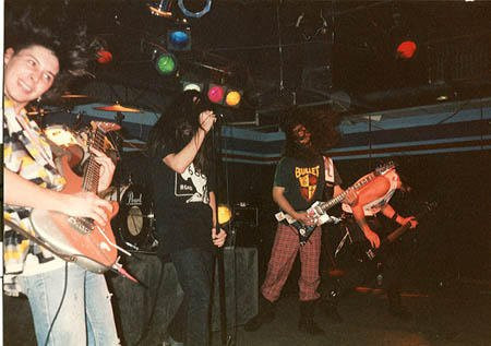 Academy Black was a crossover thrash metal band begun in 1987. Featuring David Yammer (aka "Kommando Poet") on vocals, Jeff Mikel on guitar, Damon Gill on bass, and Greg Main on drums — with Blair Ashby and later Billy Lovelace on guitar — the band delivered a sound that was psychedelic, original, and hard to pin down. They were regulars at the Axiom, sharing the stage with bands like dead horse, Pain Teens, Sprawl, and Bayou Pigs.