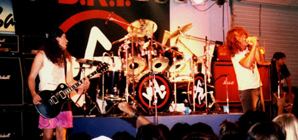 D.R.I. (Dirty Rotten Imbeciles) formed in Houston in May 1982 from the ashes of hardcore punk band Suburbanites. The original lineup of vocalist Kurt Brecht, guitarist Spike Cassidy, drummer Eric Brecht, and bassist Dennis Johnson played their first show on July 2, 1982 at Joe Star's OMNI in Houston. The band's name came from Kurt and Eric's father, who called them "a bunch of dirty rotten imbeciles" after complaining about the noise from their rehearsals. Drummer Eric Brecht designed the band's iconic "Skanker Man" logo as part of an art college assignment.